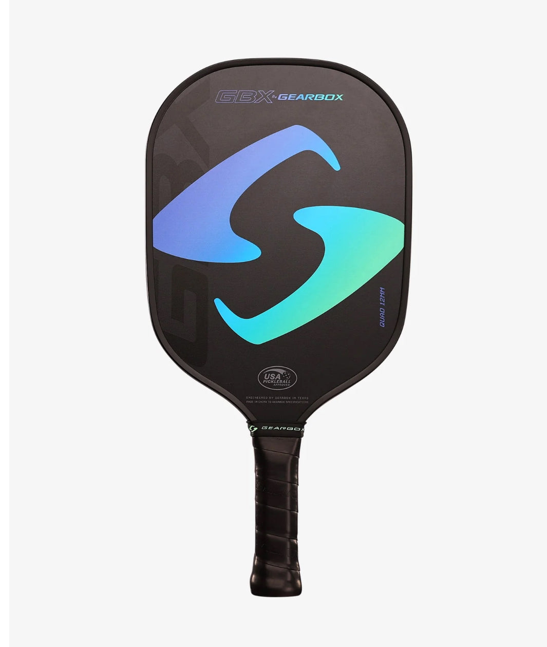 Crafted by Gearbox, the leader in high-performance paddle innovation, the GBX Quad 12mm is built with premium materials, advanced engineering, and a textured fiberglass face for enhanced ball control and spin. Featuring a reinforced throat for added stability, a PU molded handle for superior comfort, and a sleek high-end graphic, this paddle is designed to boost your confidence and make every game more enjoyable.