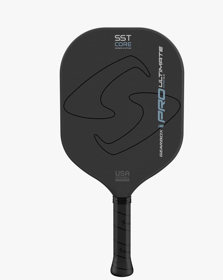 The Gearbox Pro Ultimate Hyper Paddle is a groundbreaking addition to the PRO series, featuring a 16mm wide-body design crafted for top-tier performance. Engineered with advanced technology, this paddle combines unmatched maneuverability, stability, and power, catering to players who demand versatility on the court. Its innovative Quad-shaped face is paired with a longer handle, delivering extended reach and exceptional control for two-handed shots. This configuration offers the quick responsiveness of an 11mm paddle while maintaining the stability and feel of a thicker core, making it a game-changer for competitive play.